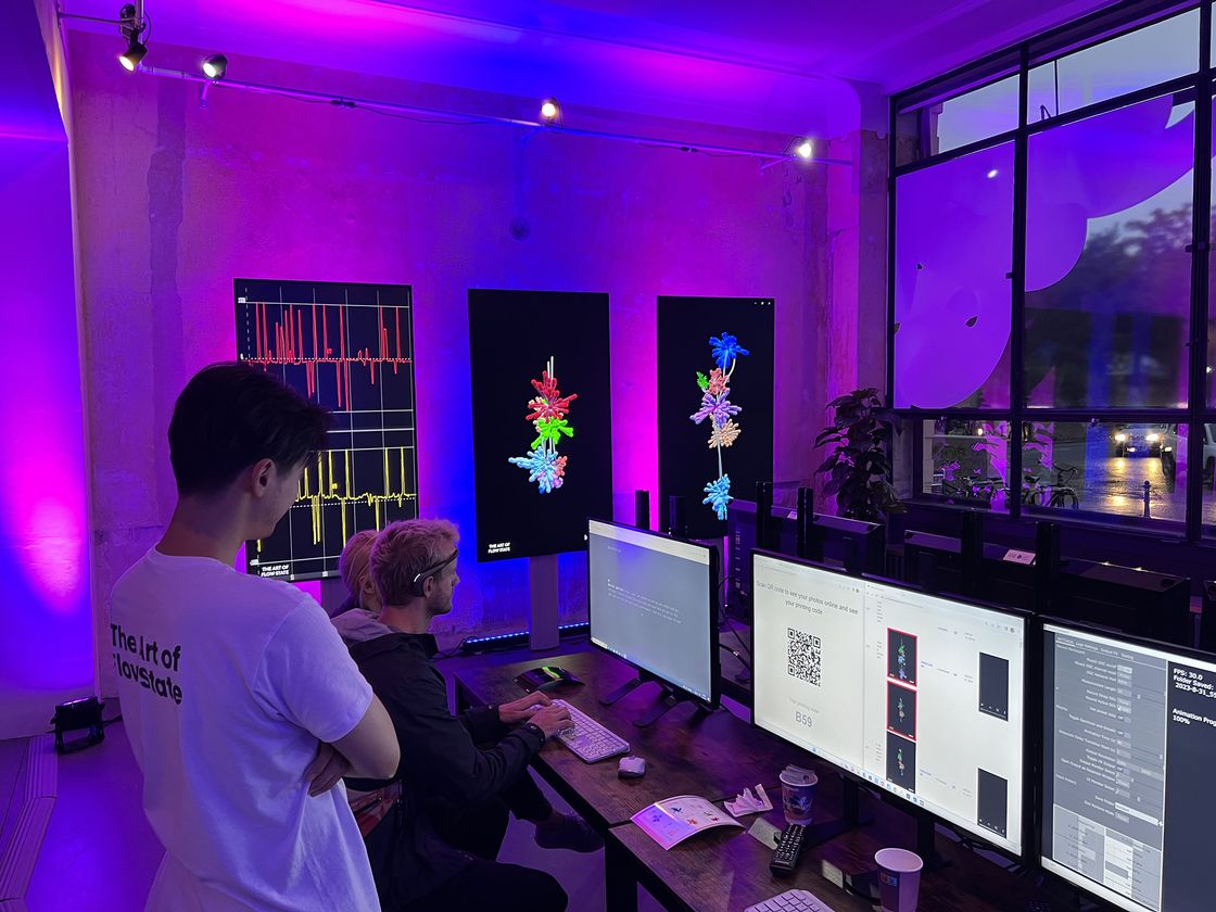Immersive experience using real time brainwave data to visualise participants flow state when using MX products to create organic art and 3D printed sculptures. -